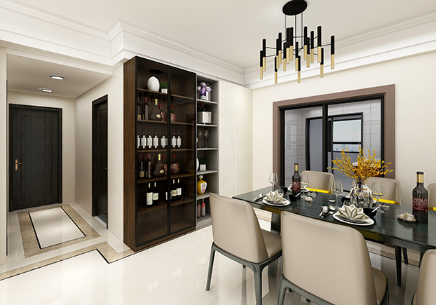 ▲屋主平常喜欢喝点小酒,所以设计师专门定制了一个酒柜,可以放置一些藏酒,透明玻璃窗,一眼望去倒像个装饰品。