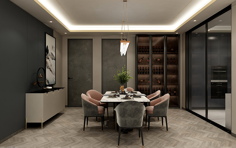 走廊过道区域,千万别空着,花点心思去设计装修,便能四两拔千斤。高颜值的鞋柜与玄关分布在过道两边,摆脱传统过道两堵白墙的单一沉闷,让狭长的过道成为一道靓丽的风景线。