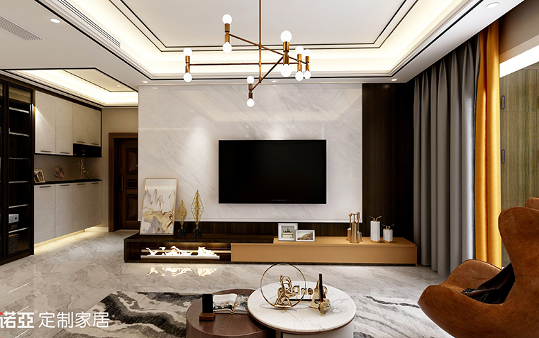 高级黑与高级灰做为表现,黑白的对比鲜明,总给空间一种大大方方的利落感觉。选用带有高级感爱马仕橙,黑色及碳灰色,来演绎一种“低调的奢华”,令空间质感更为饱满。