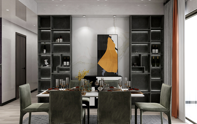 本案为碧桂园·天荟265平大平层的现代极简风格案例。现代派的极简主义在满足功能的基础上,不断的做减法, 反对形式化和装饰化,抛弃不必要的细节而强调物体本身的美,主张功能化和理性化的设计理念,加上对材料和色彩的考究、运用,在设计师的偏执喜好里,掀起对“黑的溺爱”的艺术思潮。