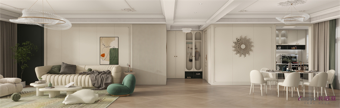 轻法式的氛围感,藏不住的浪漫和温馨。生活的浪漫,从家开始。螺青和奶贝颜色的强烈碰撞,尽显灵动,浪漫而温馨。对比色的反差并没有很突兀的感觉,反而多了一点复古优雅的气息。在这个家里的每处角落都成为风景,尽享平和时光,细品生活的美好。仿佛置身梦境之中。当兼具着温馨浪漫与艺术基因的法式风格邂逅家居空间,带来令人羡慕的精致品味--优雅,温馨,时尚,高端,生活被演绎的像诗一样优美。