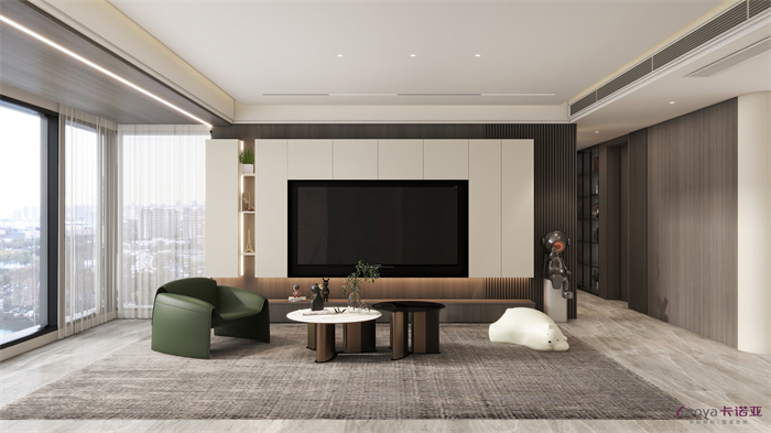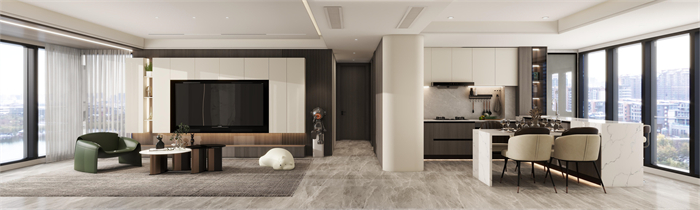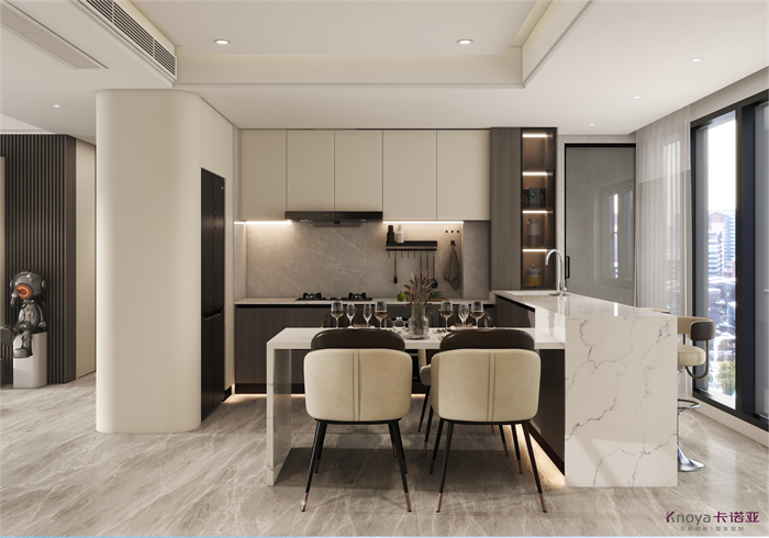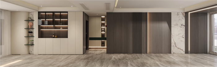 这是一个三口之家,客户是都市精英人才,对生活充满了热爱,对品质有着极高的要求,所以本方案主要以高级灰木纹色为主,搭配温柔典雅的水性漆雅杏,给客户营造一个亲近自然,同时又不失奢华的温馨舒适的空间。91视频福利网站在原有的空间上做了一个大胆的改造,打造了一个中西结合的开放式91视频福利网站,空间更大,功能更齐全。同时一些墙角和柜体也做了圆弧设计,动线更加流畅的同时,更显时尚和高级。