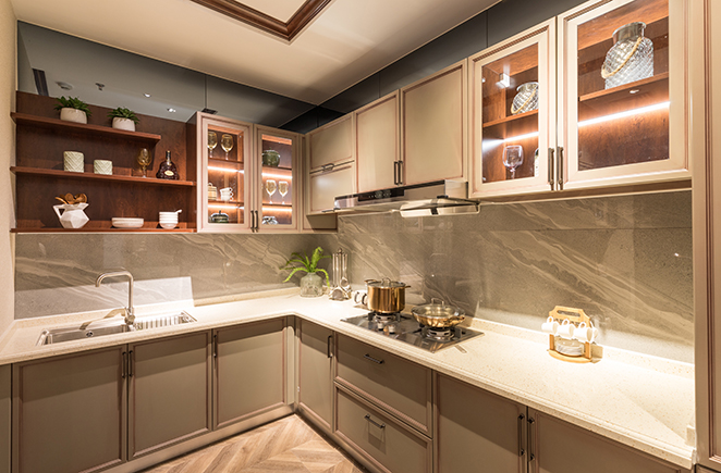 定制橱柜需要注意自己想要什么材质的,比如台面的材质有大理石、石英石、不锈钢等,而柜体板材有实木板、颗粒板、吸塑板等,每种材质所拥有的特色都有所不同,你可以具体了解过后再进行选择,这样用起来才会感到更顺心。