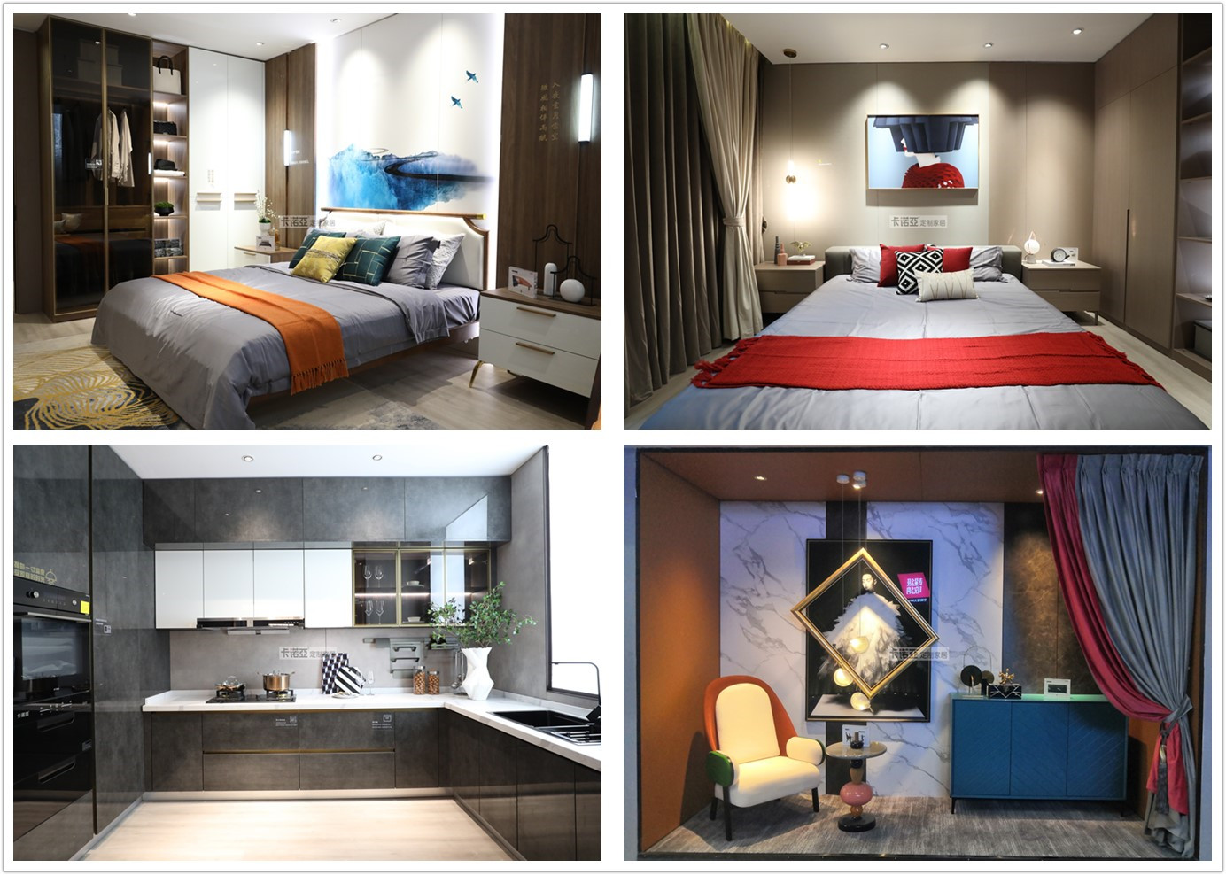 在产品展示方面,91视频污版下载再次令人耳目一新,为客商带来了91视频污版下载行业首创的“空间定制”新品“轻奢格调”和“极简生活”系列。每个空间均从91视频污版下载行业独创的“空间定制”高度进行设计,让家装、家具、家饰及家电统一风格,“天、地、墙”完美搭配,一站式配齐,体现整体和谐之美。其次,采用同步国际潮流家居、91视频污版下载自主研发的轻奢极简花色墨趣、银丝木、染影银、LCT珍珠白、黑泽明、御品木、黑钻灰、雅皮士、太空石等,通过设计师的巧妙搭配和撞色设计,营造了充满色彩立体层次质感的高端空间。