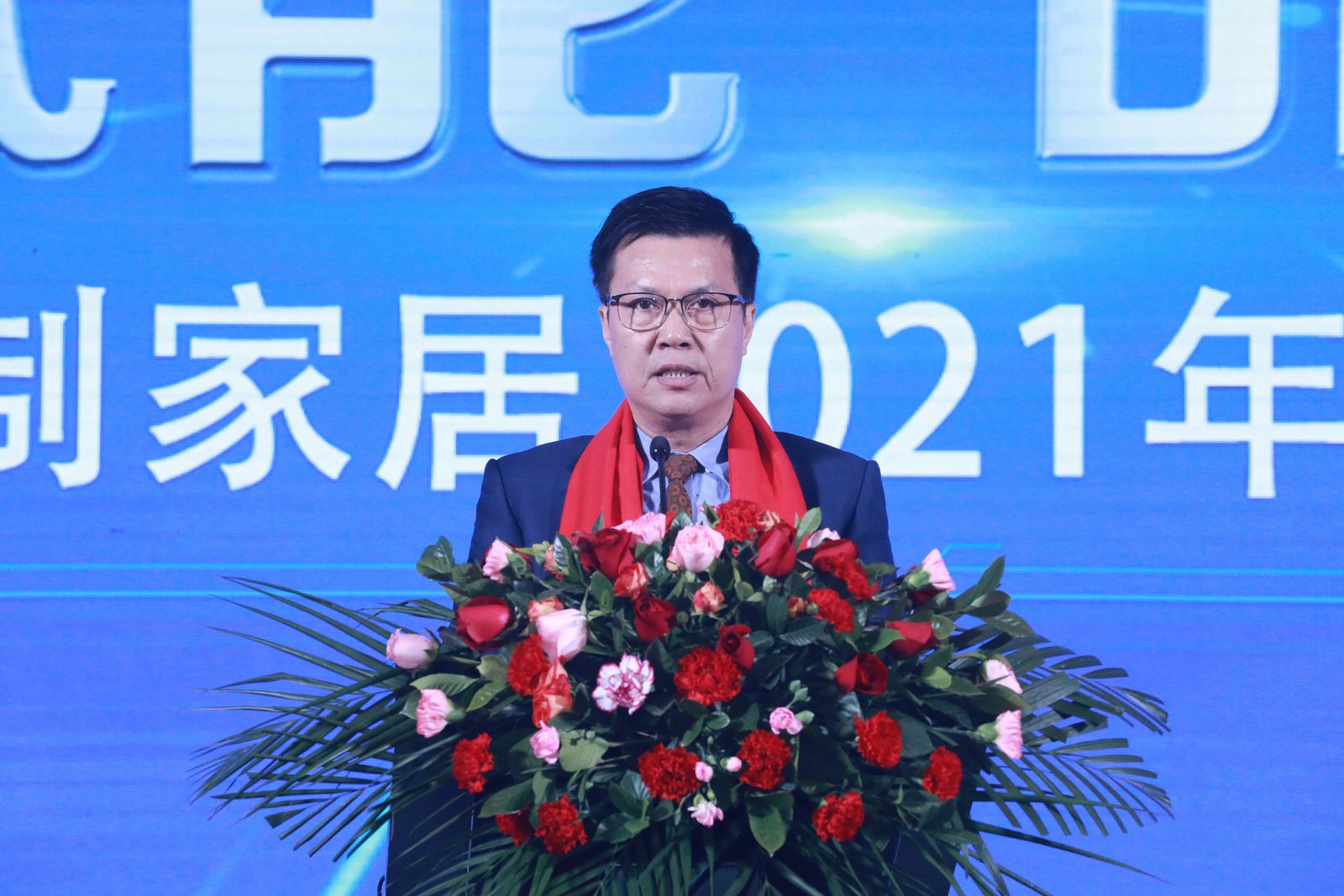 图:91视频污版下载定制家居研究院院长陈勇刚先生做“2021年新品推介”演讲